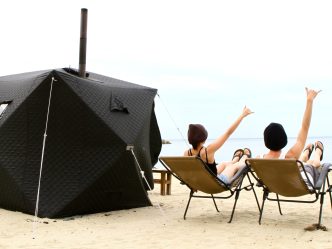 人気のテントサウナも完備しており、水風呂はそのままビーチにダッシュ!