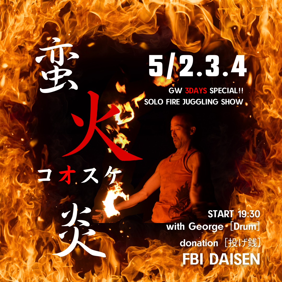 蛮火炎メンバー コオスケによるファイヤージャグリングショー!!